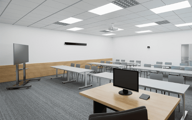 From large meeting rooms to classrooms, flex spaces, and divisible rooms, Nureva adapts as your spaces evolve. Simple setup, effortless coverage, clear sound everywhere.