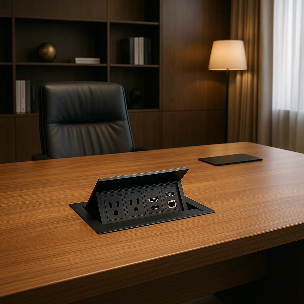 Compact, well-designed cubbies that keep tables neat and connections easy to access. Built for modern meeting spaces where clean cable management matters.