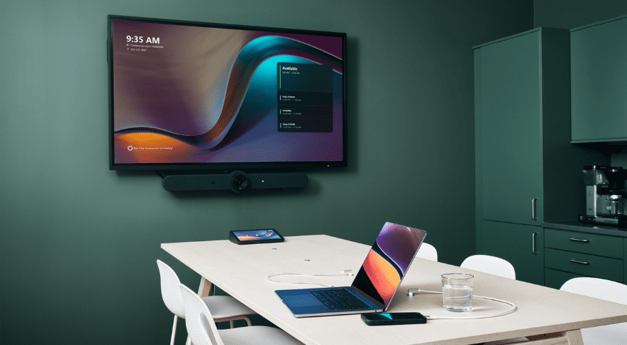 Dual-screen support delivers crisp presentations and more inclusive meetings.